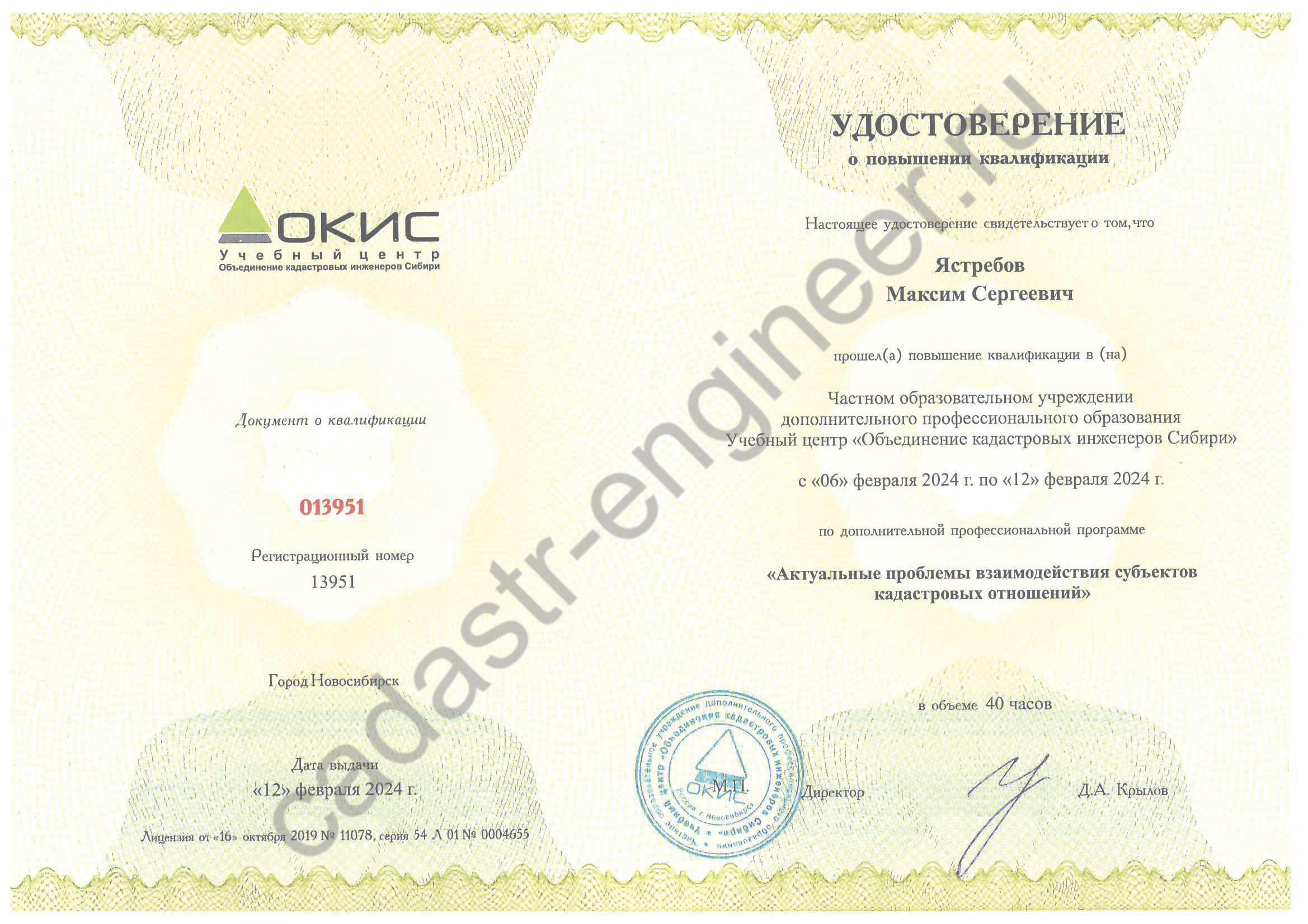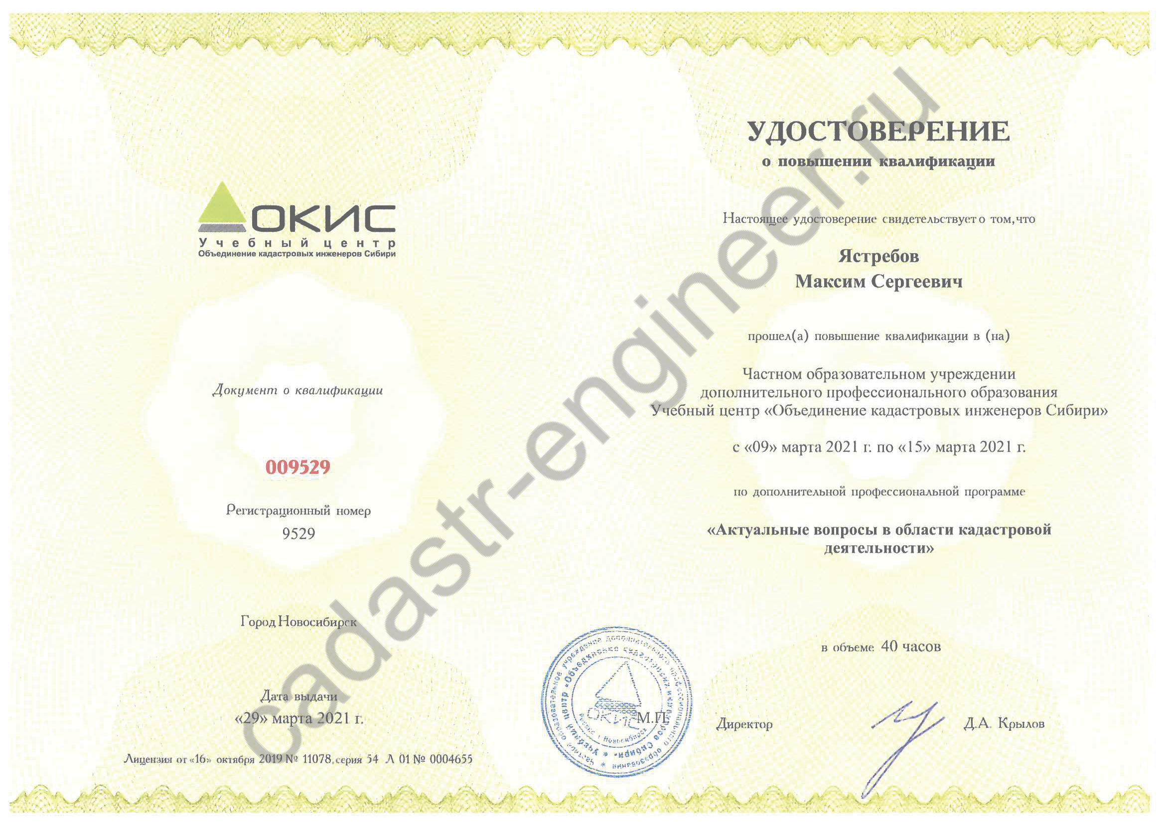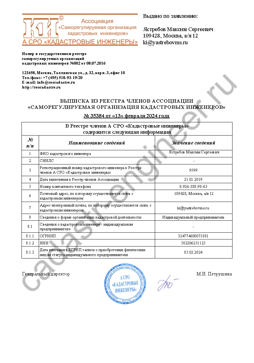 Я являюсь аттестованным кадастровым инженером и состою в Ассоциации СРО «Кадастровые инженеры».